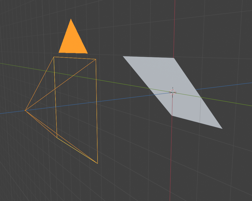 Where the grey plane is the object that is to be rendered, the yellow lines represent a “camera” from which the plane is to be viewed, and the blue line represents the view/clip-space Z axis.